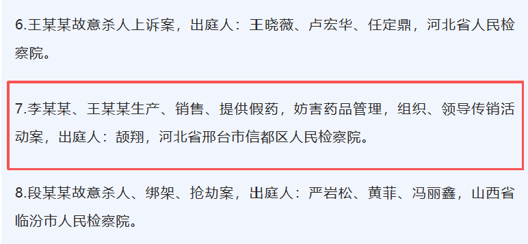 为深入学习贯彻习近平法治思想,积极适应以审判为中心的诉讼制度改革要求,深入推进检察队伍建设,有针对性地强化出庭支持公诉能力建设,持续推进“高质效办好每一个案件”,今年4月,最高人民检察院在全国检察机关组织开展刑事案件出庭支持公诉评议活动。经最高检各评议小组、最高检各刑事检察业务厅推荐,最高检刑事检察工作指导小组组织评定,71个全国“优秀公诉庭”和20个全国“优秀刑事案件审查报告”从被评议的案件中脱颖而出。其中,邢台市信都区人民检察院办理的李某某、王某某生产、销售、提供假药,妨害药品管理,组织、领导传销活动案获评全国“优秀公诉庭”。